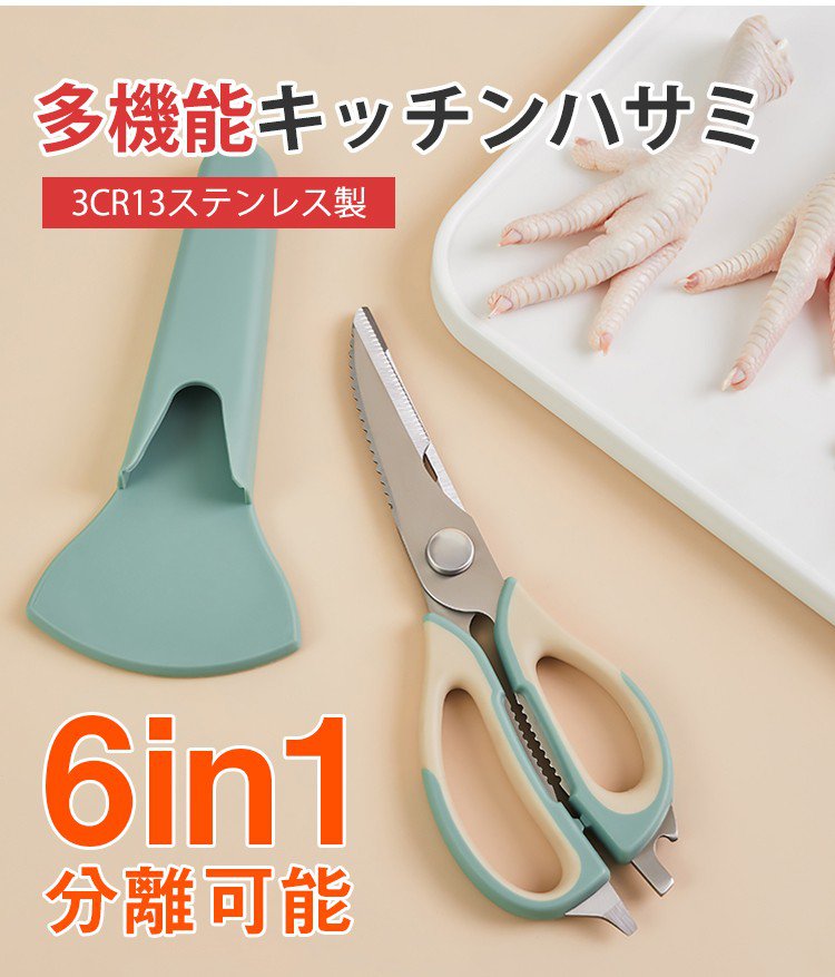 【多機能キッチンハサミ】ご家庭や会社やお庭、キャンプなど幅広く活躍!